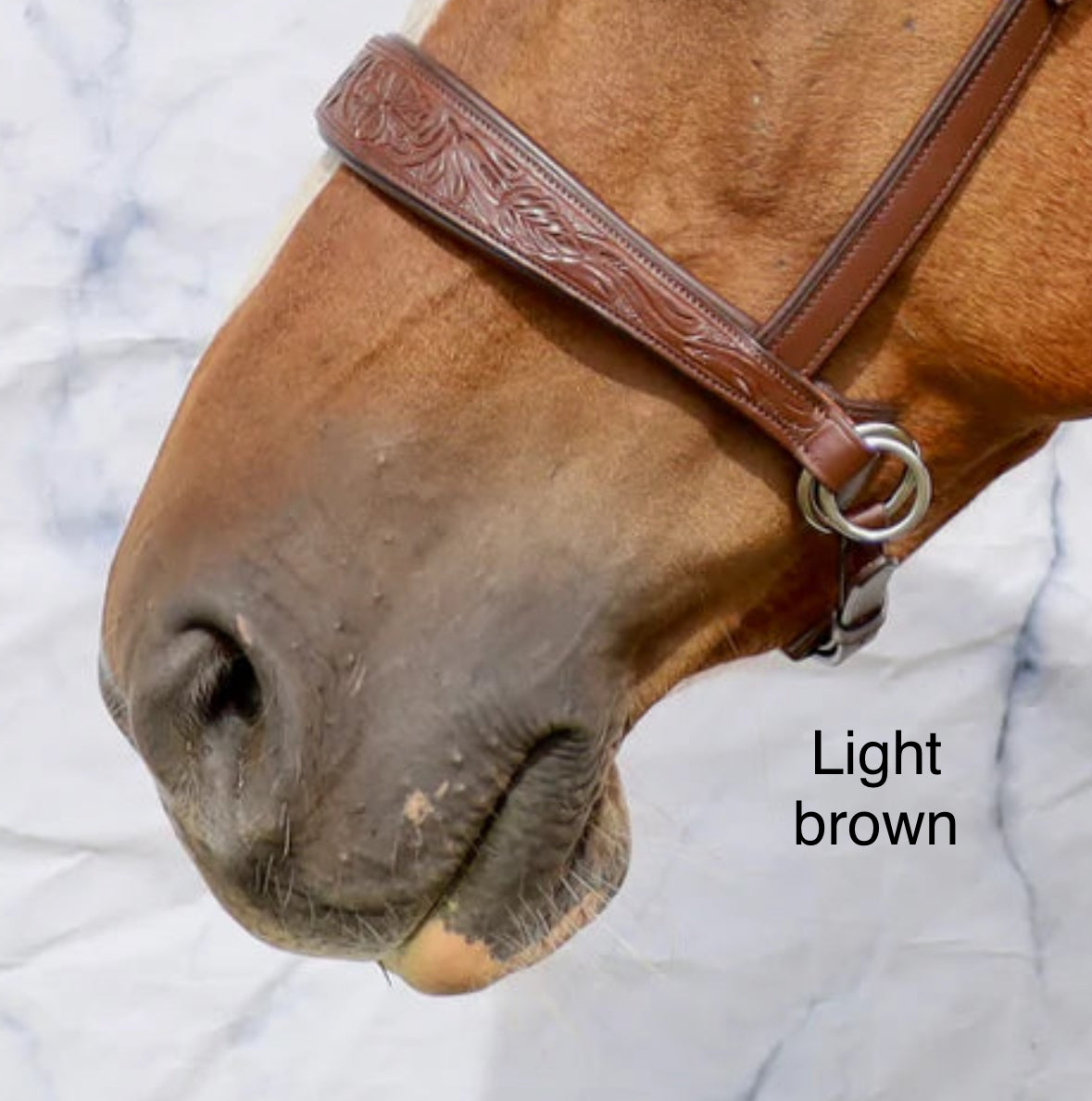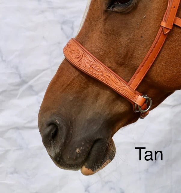 The noseband and browband are also padded for additional comfort.Available in dark brown, light brown, tan and black currently.This bridle is a side pull bridle, meaning it is a direction action bitless bridle with no leverage action and no cross under bitless attachment. This makes it a very soft bitless choice, similar to riding in a halter.